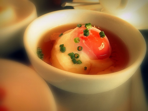 温泉卵の写真をアップで。