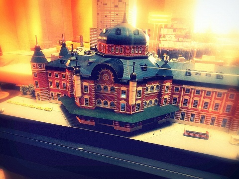 ちょっと早く着いたのでロビーでしばし休憩。新しくなった東京駅の模型が飾られておりました。